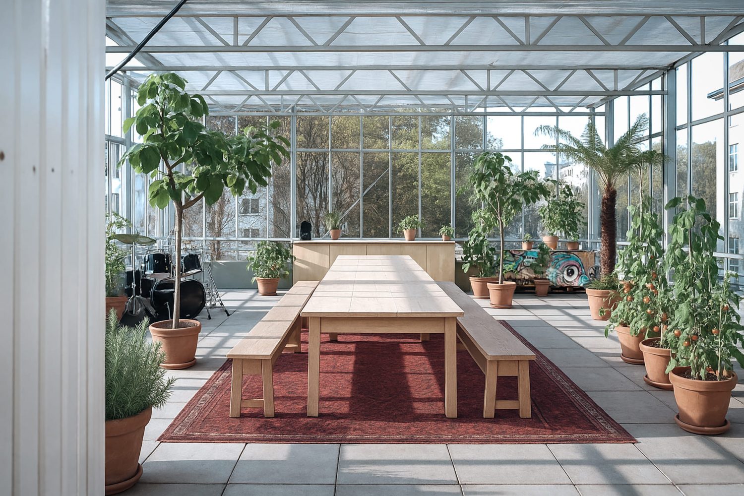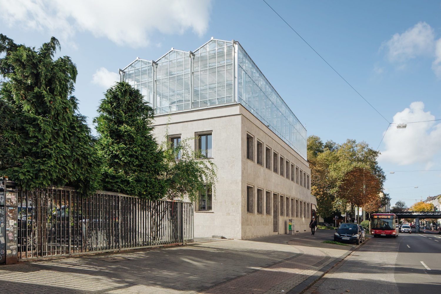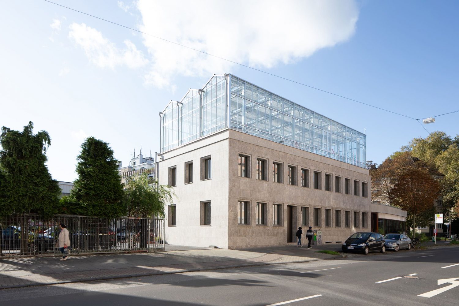 Neugestaltung: Anstatt das Flachdach nur zu sanieren, wurde auf dem Dach ein industriell übliches Gewächshaus errichtet, das sowohl funktionale als auch ästhetische Anforderungen erfüllt.